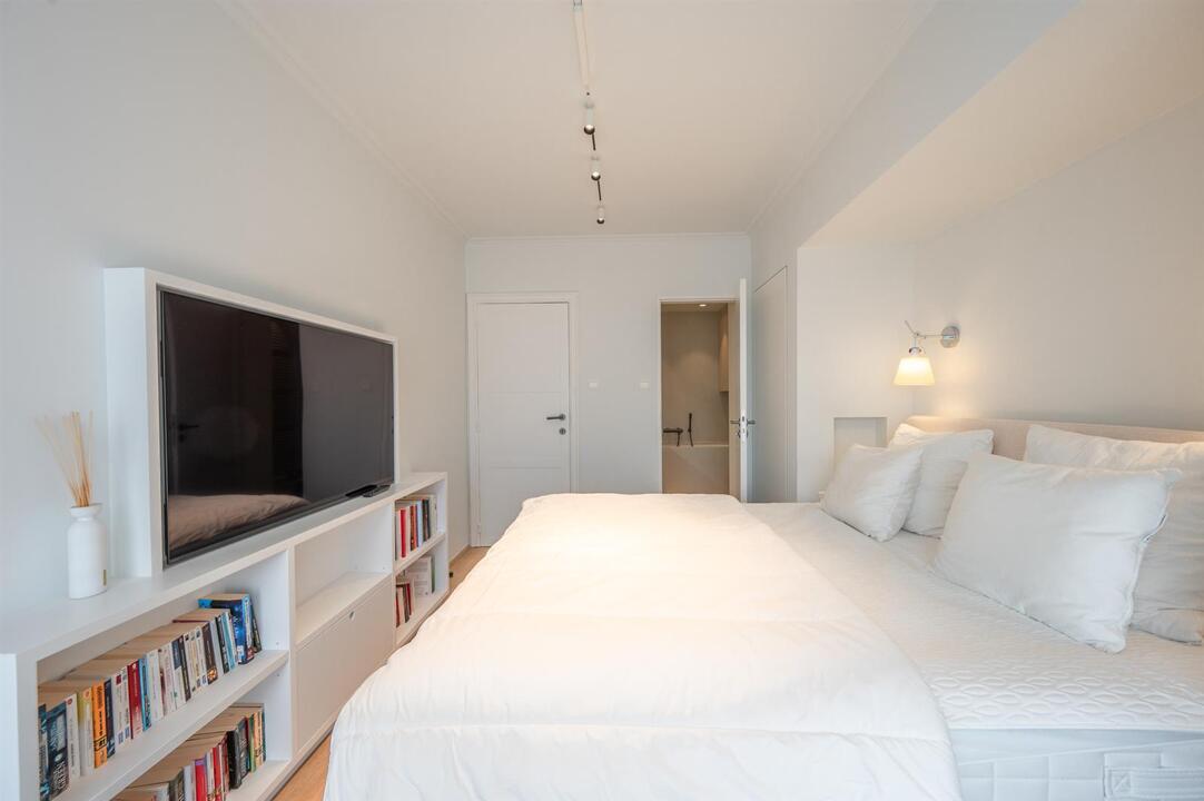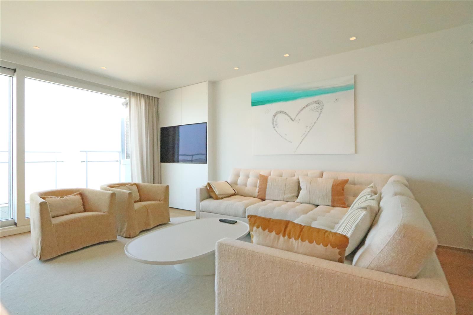 Appartement de luxe offrant une vue dégagée sur la mer et doté d'une grande terrasse à l'avant. L'appartement dispose d'un vaste salon avec cuisine ouverte et d'un accès direct à la terrasse. Il comprend également trois chambres, chacune avec sa propre salle de bains : une chambre double avec salle de bains attenante équipée d'une baignoire et double lavabo, une chambre d'enfants avec deux lits superposés et une salle de douche, et une troisième chambre avec un lit double (140 cm) et sa propre salle de douche. Une place de parking privée est incluse.