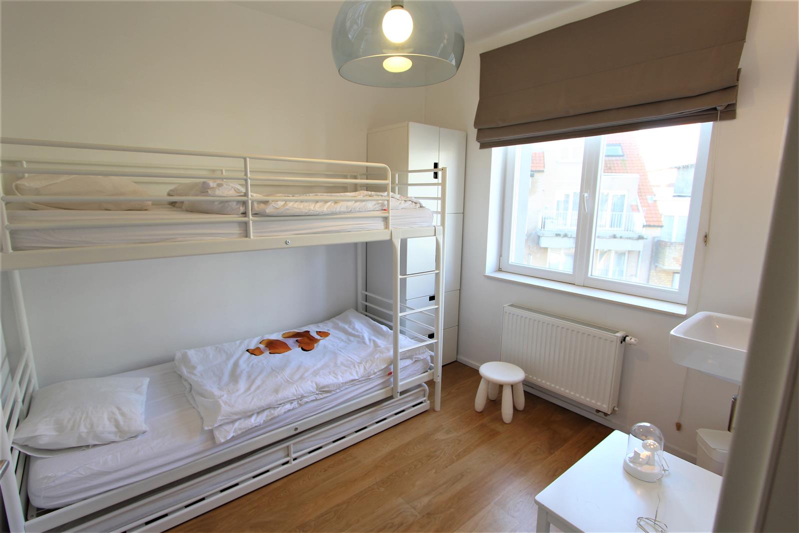 Gezellig 3-slaapkamerappartement op een toplocatie tussen het driehoeksplein en de Zeedijk. De leefruimte heeft een overvloed aan natuurlijk licht, wat zorgt voor een aangename en open sfeer. De praktische keuken sluit mooi aan op de leefruimte. Er zijn twee dubbele slaapkamers en een kinderkamer met stapelbed. Elke slaapkamer is voorzien van een eigen lavabo, wat extra comfort en privacy garandeert. Daarnaast is er een afzonderlijke douchekamer en een apart toilet. Voor extra gebruiksgemak zijn er ook een wasmachine en droogkast aanwezig. In de residentie is er gemakkelijke fietsenstalling en garagebox is inbegrepen in de prijs.