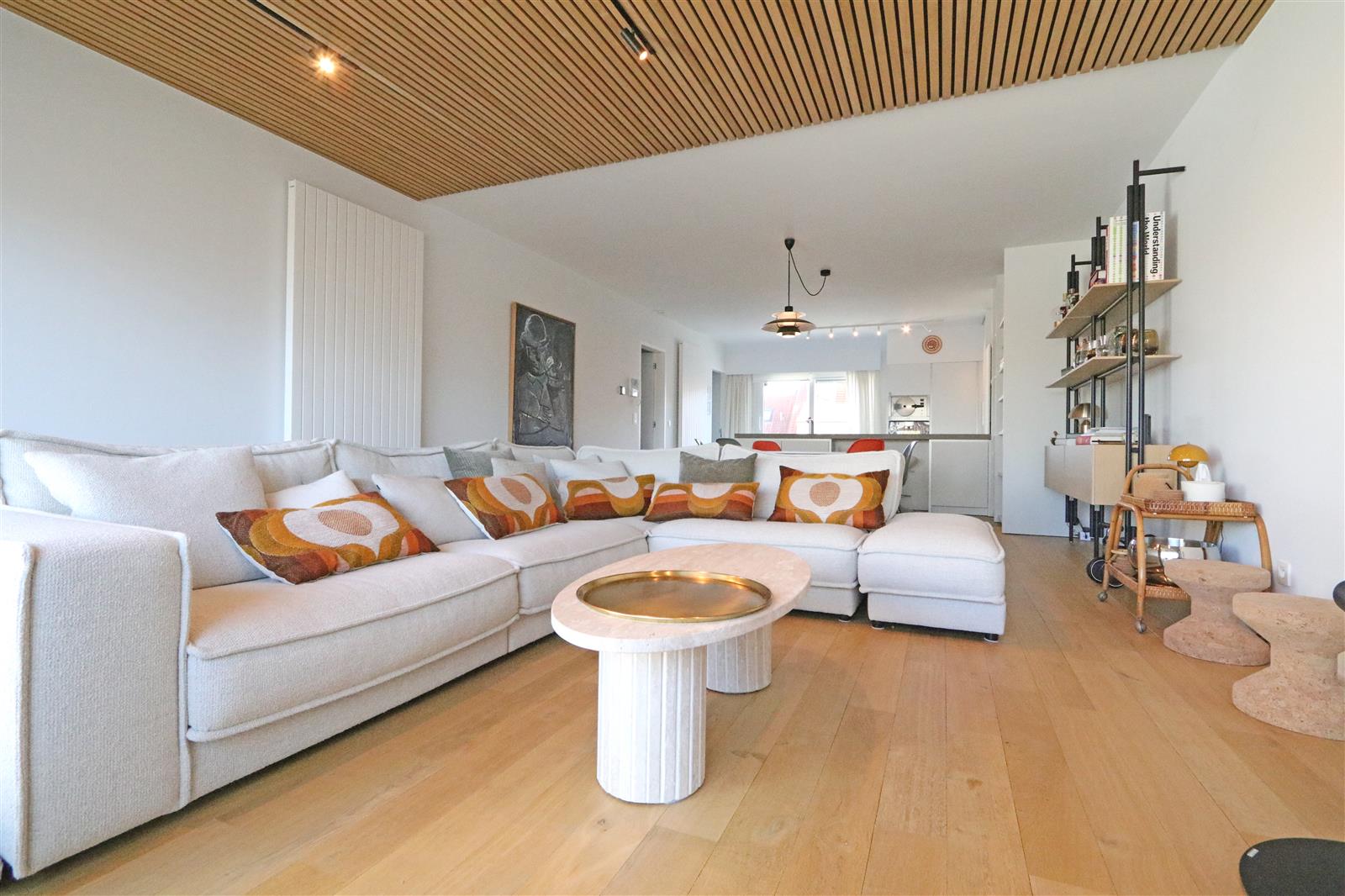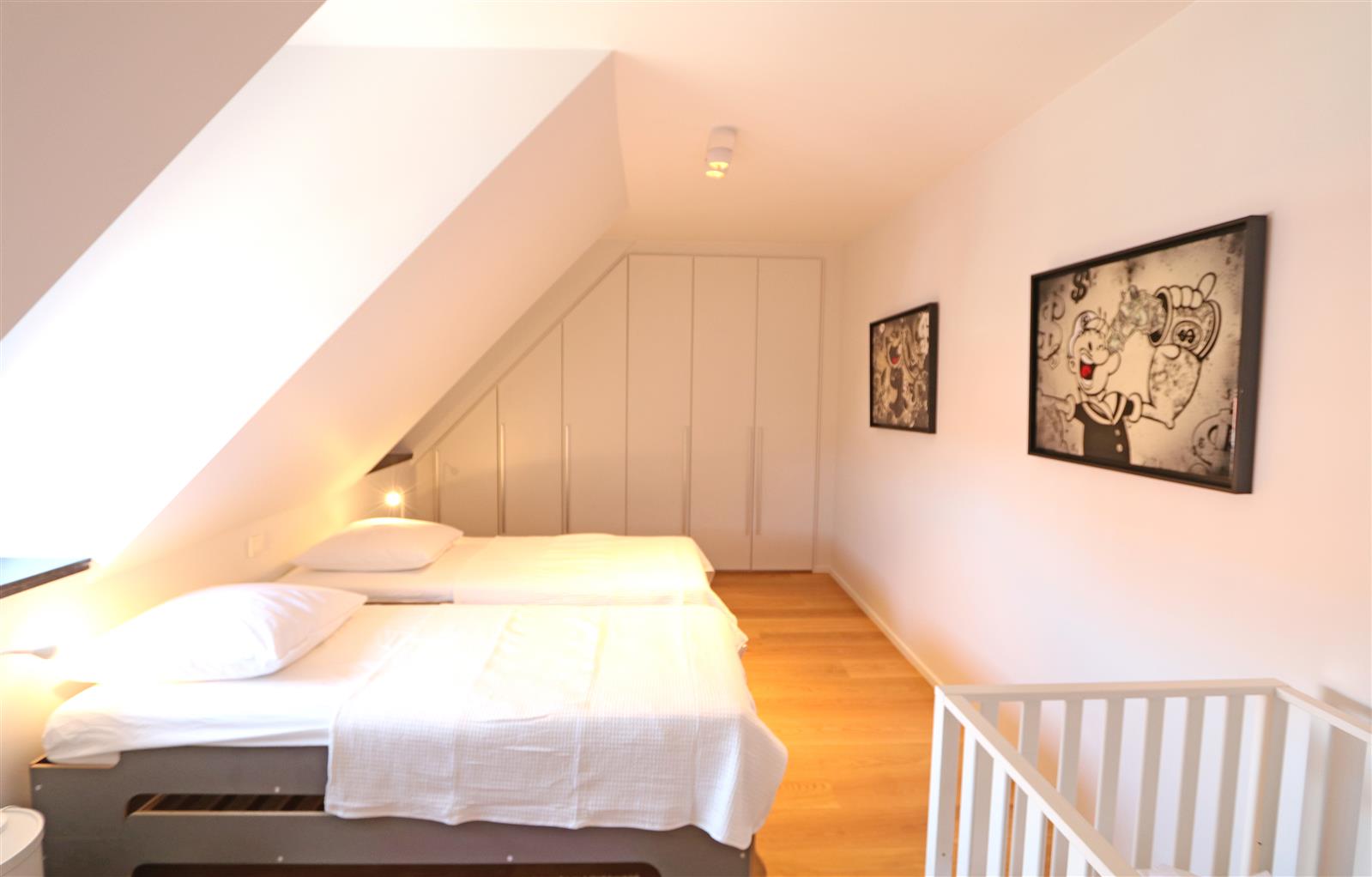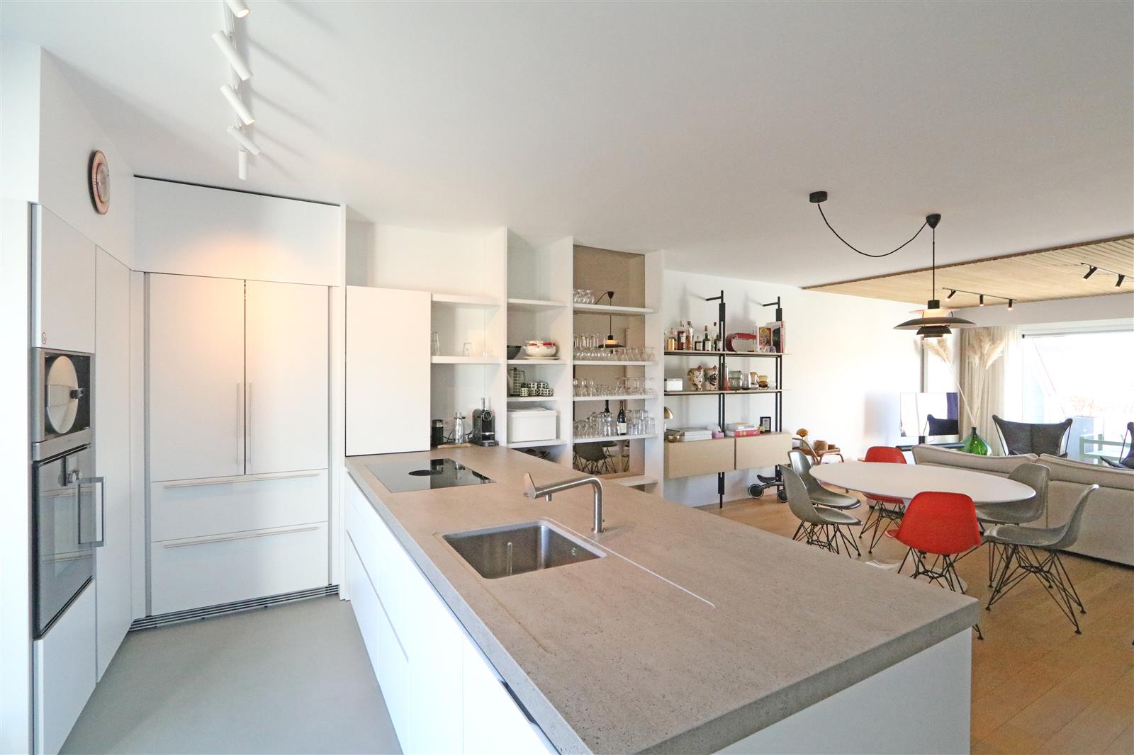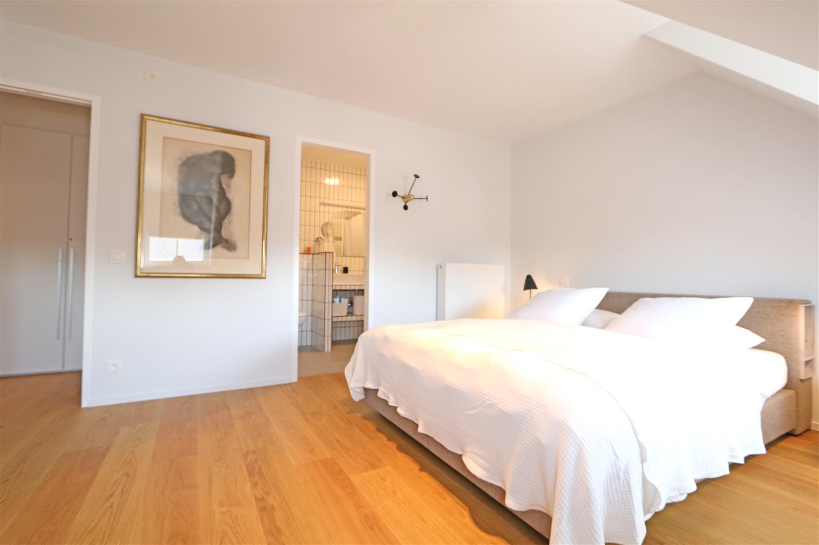 Charmante duplexpenthouse, smaakvol ingericht en voorzien van een open keuken. De woning beschikt over royale zonneterrassen aan zowel de voor- als achterzijde. Op de benedenverdieping bevindt zich een eerste dubbele slaapkamer met en-suite badkamer. De bovenverdieping omvat twee extra kamers: een ruime dubbele slaapkamer met complete badkamer en een kinderkamer met aangrenzende douchekamer. Een garagebox in de residentie is inbegrepen.