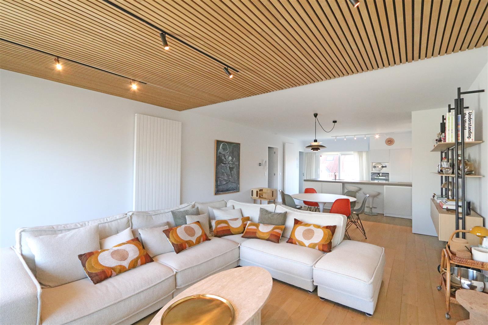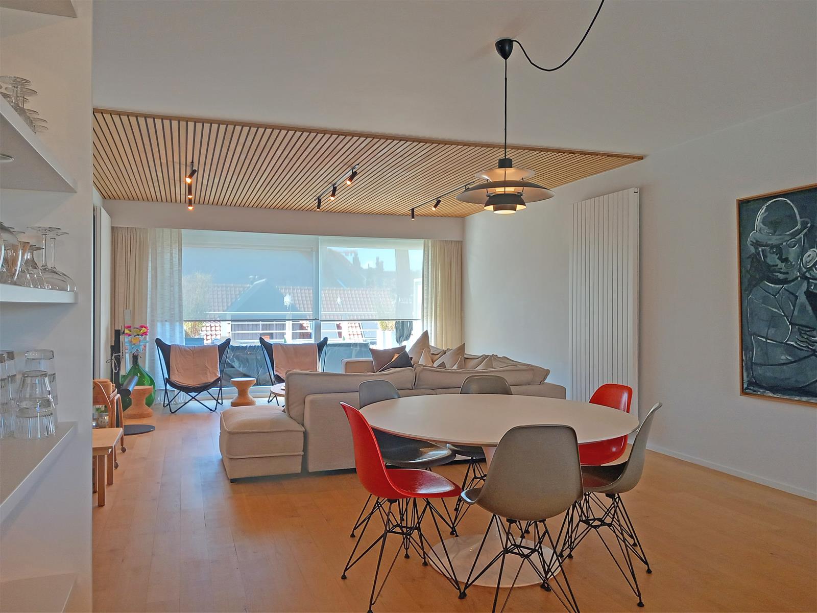 Charmante duplexpenthouse, smaakvol ingericht en voorzien van een open keuken. De woning beschikt over royale zonneterrassen aan zowel de voor- als achterzijde. Op de benedenverdieping bevindt zich een eerste dubbele slaapkamer met en-suite badkamer. De bovenverdieping omvat twee extra kamers: een ruime dubbele slaapkamer met complete badkamer en een kinderkamer met aangrenzende douchekamer. Een garagebox in de residentie is inbegrepen.