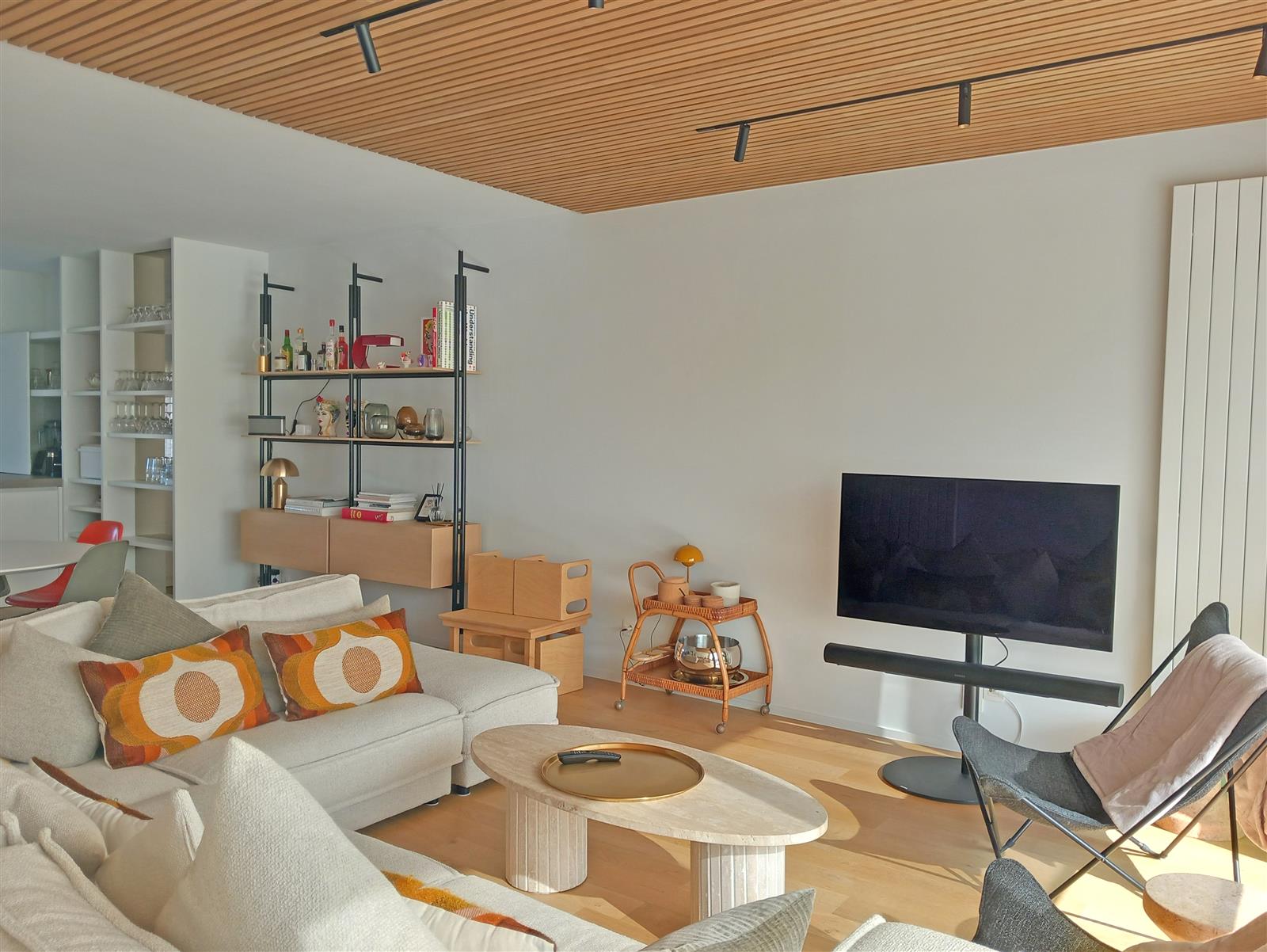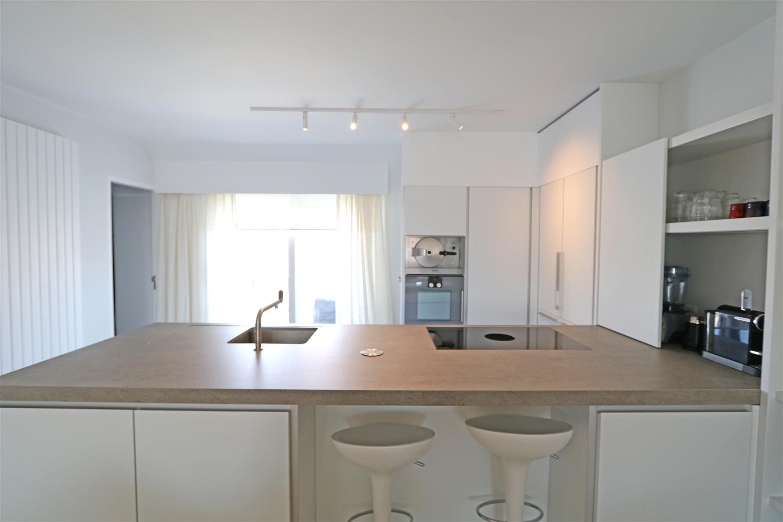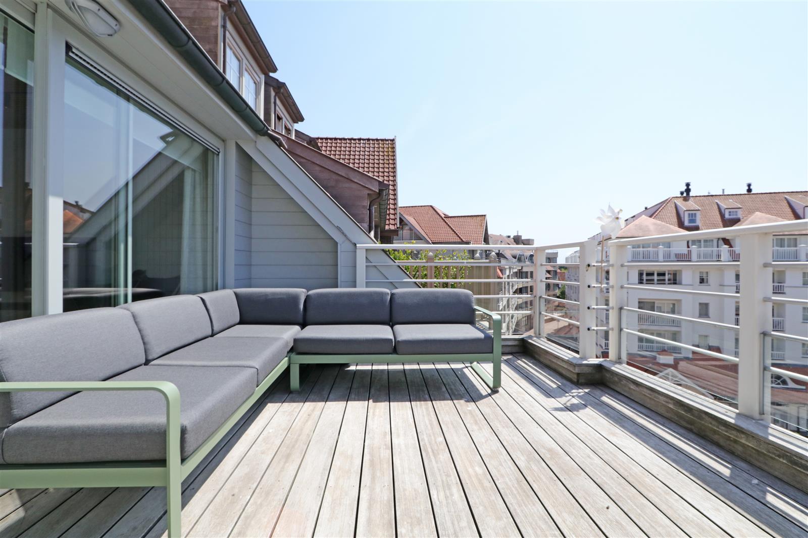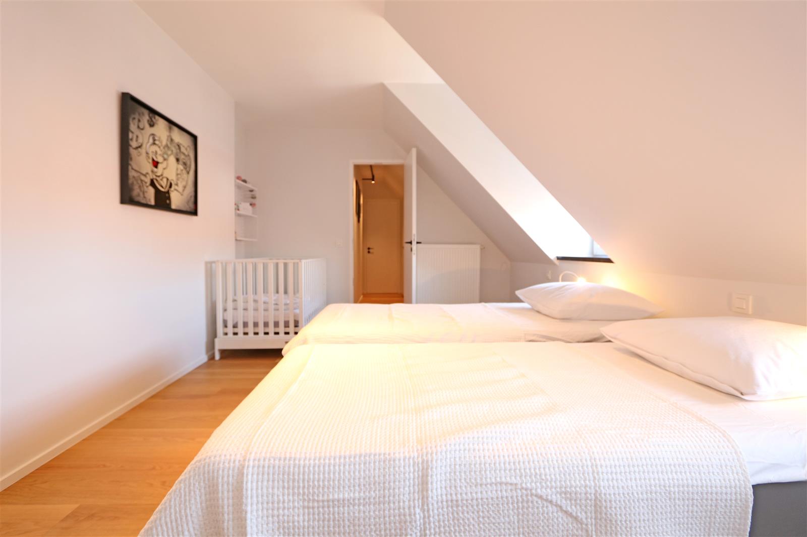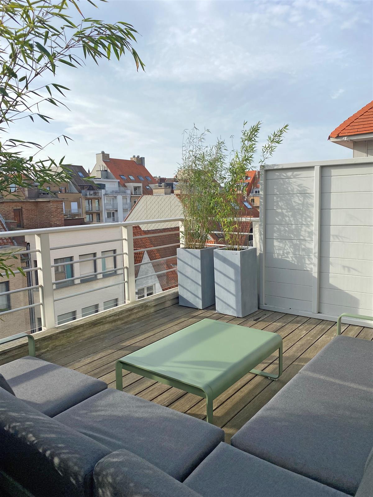 Charmante duplexpenthouse, smaakvol ingericht en voorzien van een open keuken. De woning beschikt over royale zonneterrassen aan zowel de voor- als achterzijde. Op de benedenverdieping bevindt zich een eerste dubbele slaapkamer met en-suite badkamer. De bovenverdieping omvat twee extra kamers: een ruime dubbele slaapkamer met complete badkamer en een kinderkamer met aangrenzende douchekamer. Een garagebox in de residentie is inbegrepen.