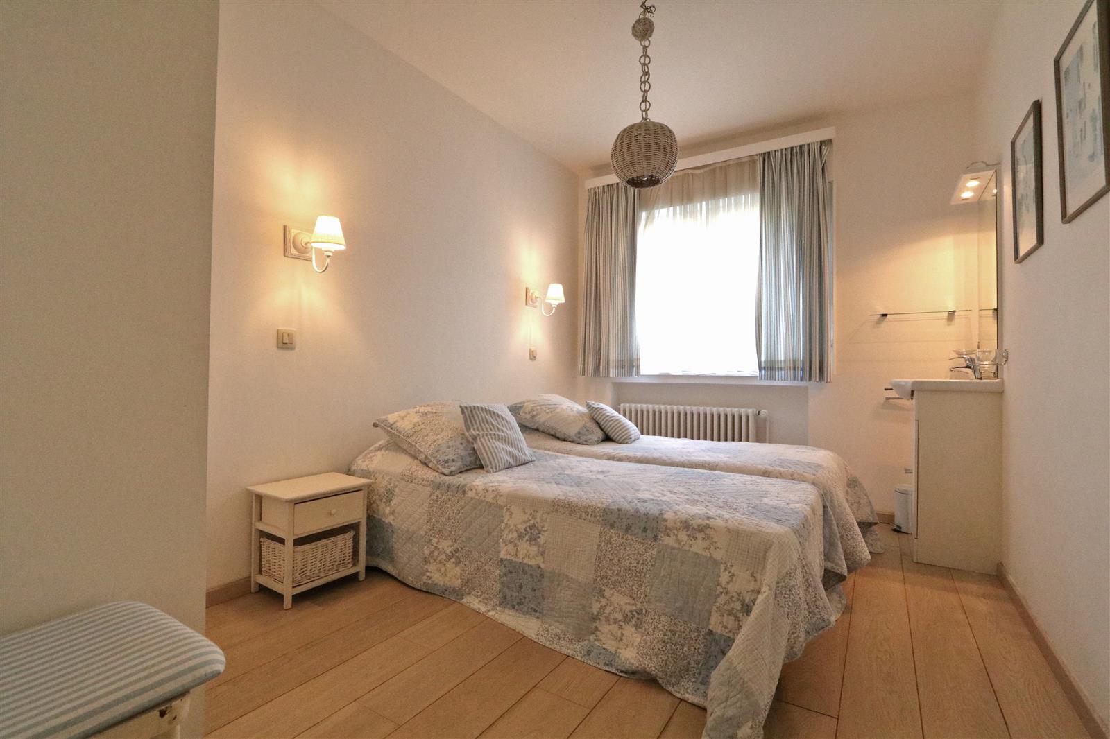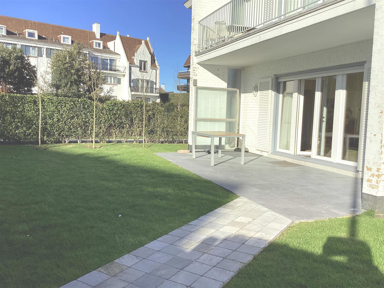 Dit ruim gelijkvloers appartement beschikt over een lichtrijke leefruimte met toegang tot terras en tuin. Een volledig uitgeruste open keuken en vier slaapkamers. Extra zijn twee ondergrondse staanplaatsen. Gelegen aan de Minigolf, nabij de winkels en het strand.