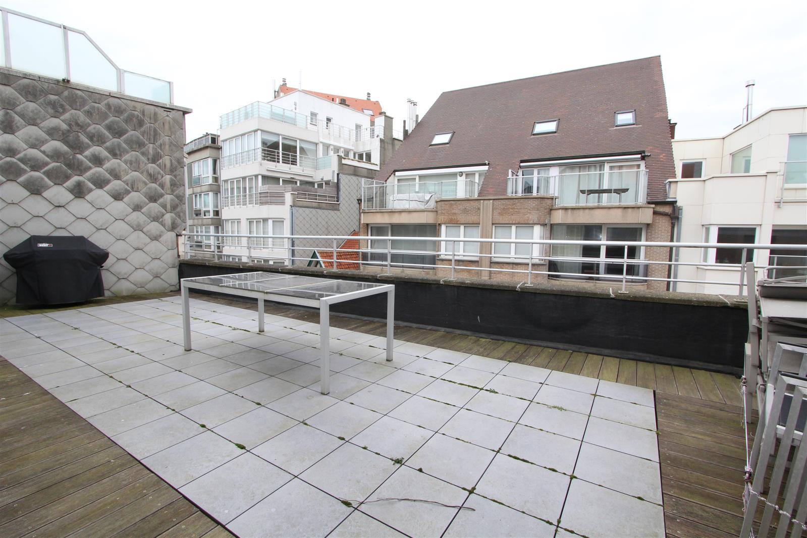 Deze gezellige penthouse bevindt zich in de buurt van het Albertplein en beschikt over een groot terras vooraan waar u kan genieten van een uitgestrekt zijdelings zeezicht. Garagebox inbegrepen.
