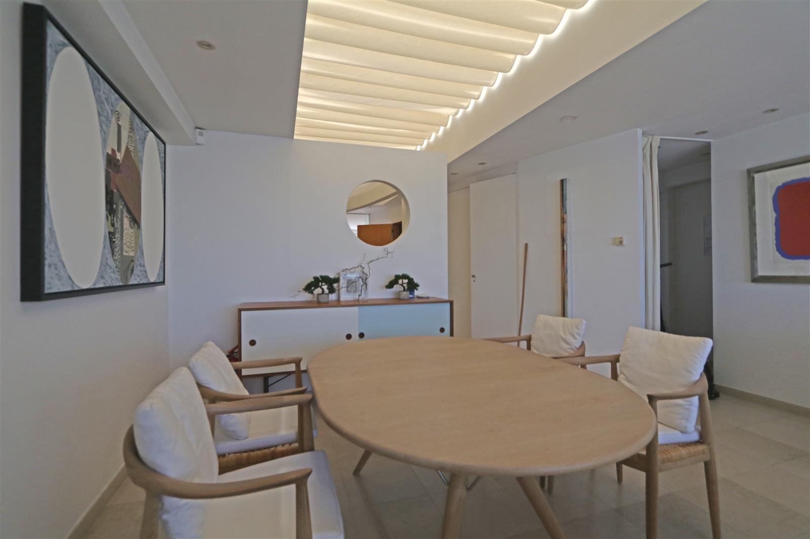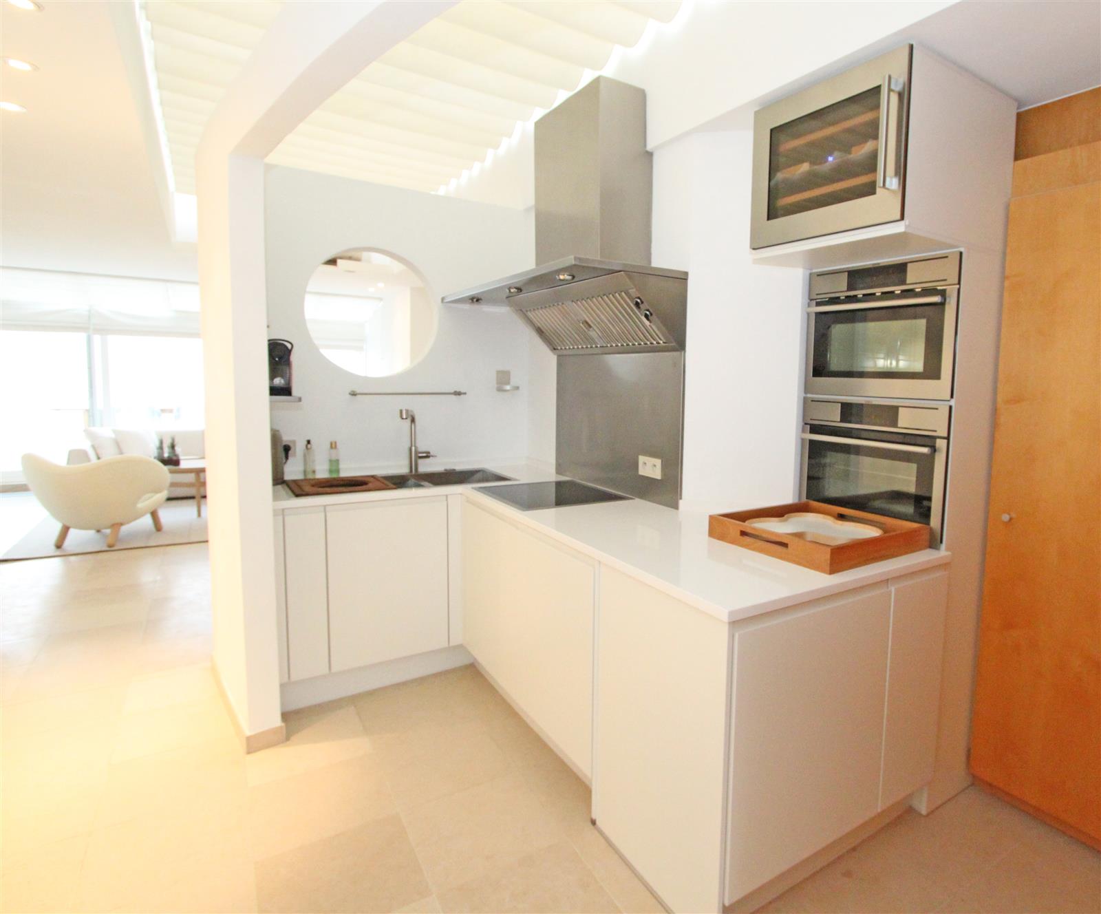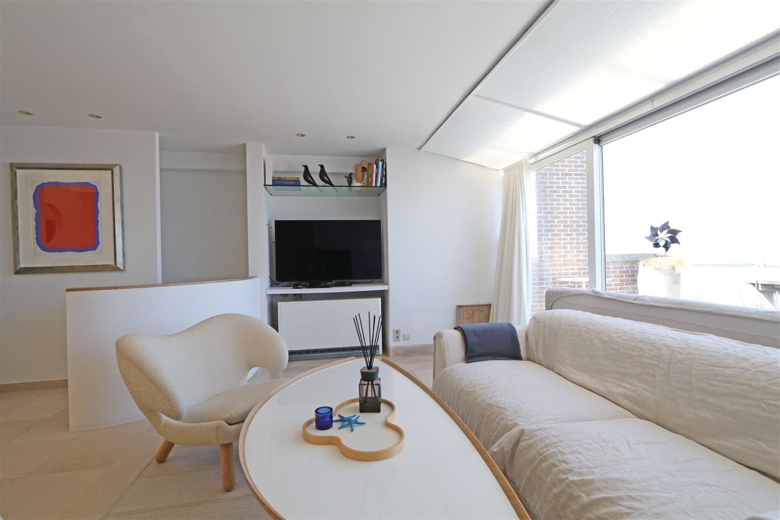 Trendy appartement met fenomenaal zeezicht. Smaakvol ingericht met design meubilair. Twee schitterende terrassen : vooraan met zeezicht - achteraan met volledige privacy. Mogelijkheid garage te huren in supplement.