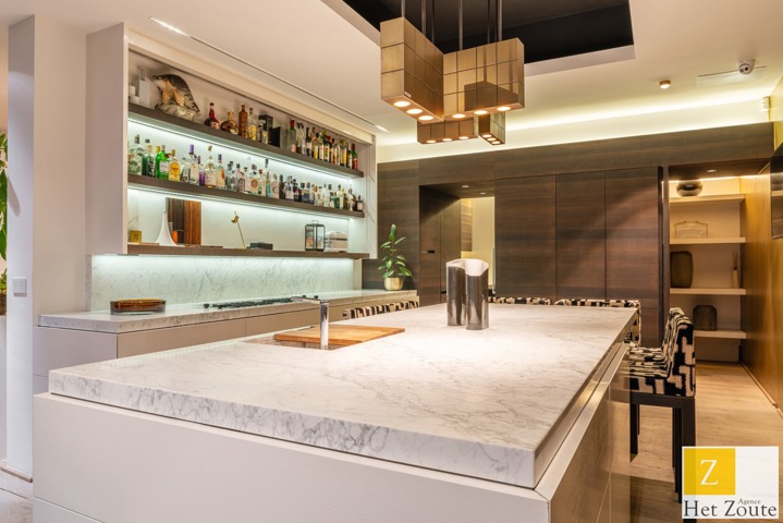 De volledig ingerichte leefruimte is een toonbeeld van verfijning: het appartement wordt aangeboden inclusief zorgvuldig geselecteerde designermeubelen, sfeervolle verlichting en exclusieve armaturen. De state-of-the-art keuken, uitgerust met topklasse apparatuur, wordt aangevuld met een praktische bijkeuken, wat het dagelijkse comfort tot een hoger niveau tilt.