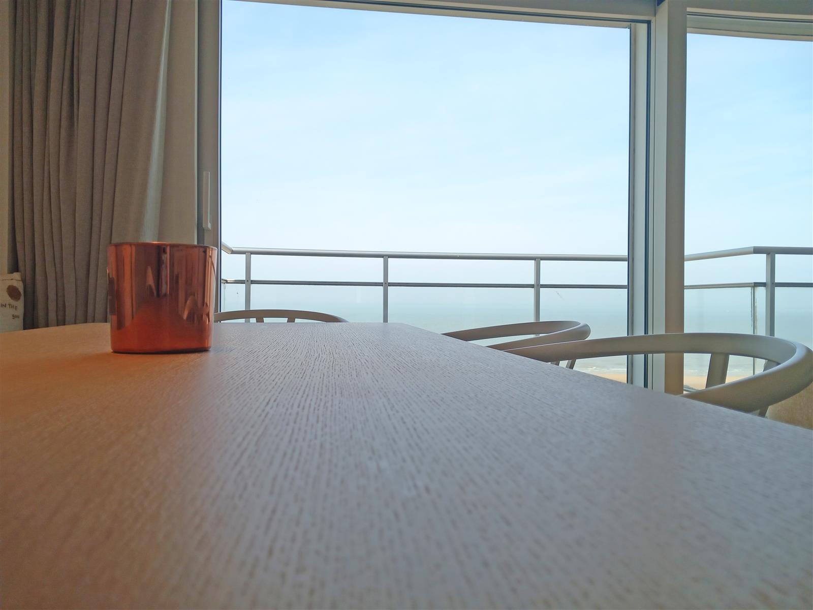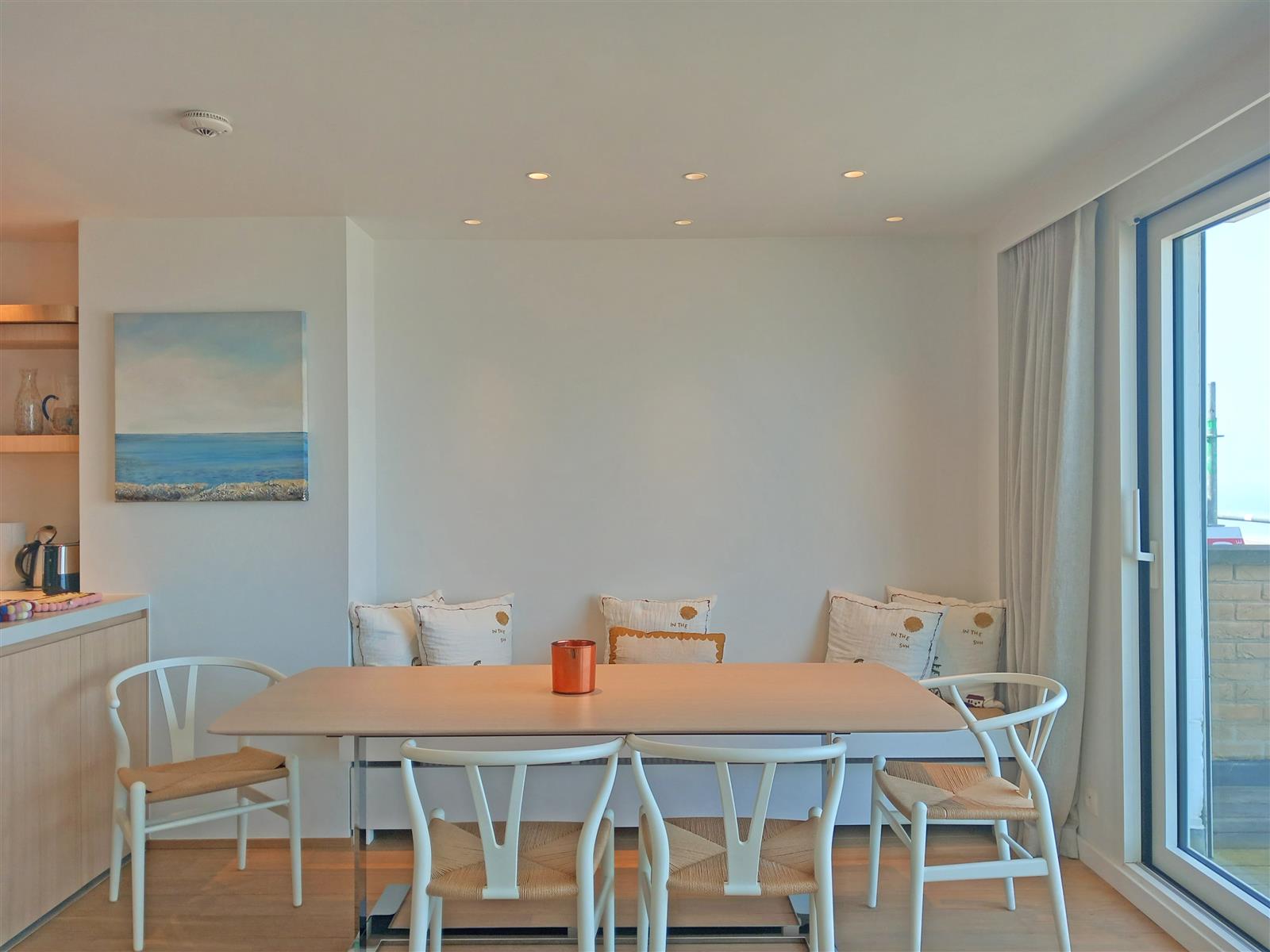 Appartement de luxe offrant une vue dégagée sur la mer et doté d'une grande terrasse à l'avant. L'appartement dispose d'un vaste salon avec cuisine ouverte et d'un accès direct à la terrasse. Il comprend également trois chambres, chacune avec sa propre salle de bains : une chambre double avec salle de bains attenante équipée d'une baignoire et double lavabo, une chambre d'enfants avec deux lits superposés et une salle de douche, et une troisième chambre avec un lit double (140 cm) et sa propre salle de douche. Une place de parking privée est incluse.