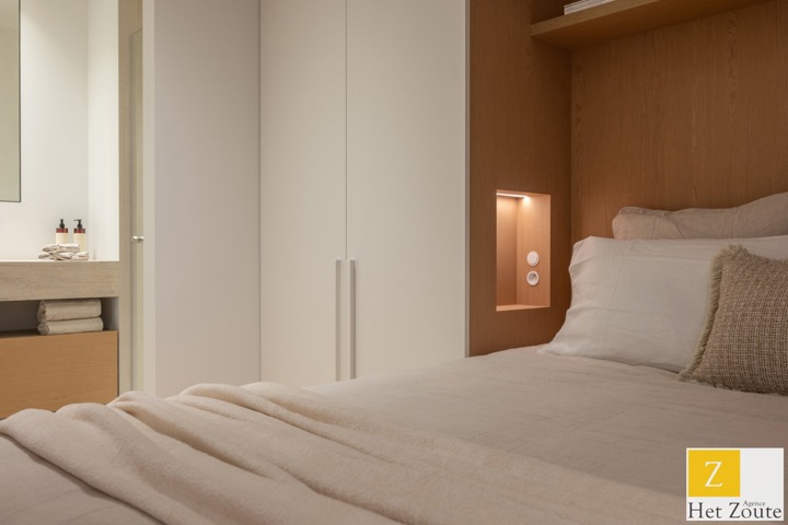 Het appartement telt twee volwaardige slaapkamers, waarvan de master bedroom beschikt over een eigen badkamer. Daarnaast is er een derde slaapkamer ingericht met een stapelbed en maatkasten. Alle slaapkamers zijn voorzien van een raam en natuurlijk licht. Verder zijn er twee afzonderlijke toiletten en een aparte douchekamer die toegankelijk is via de nachthal.