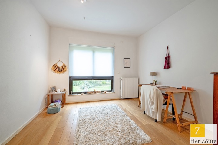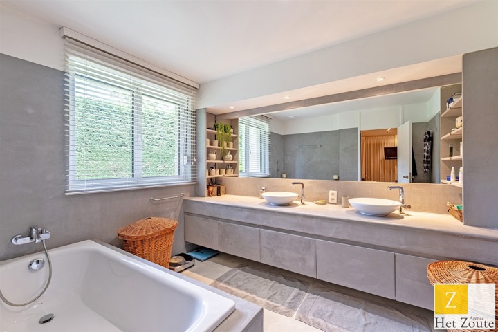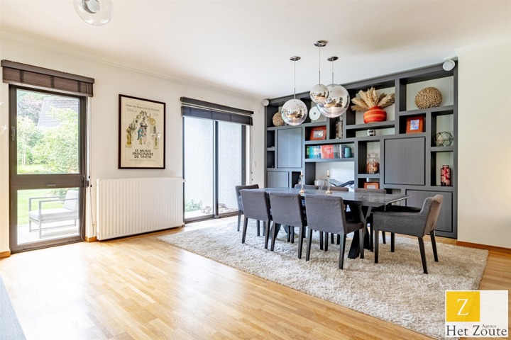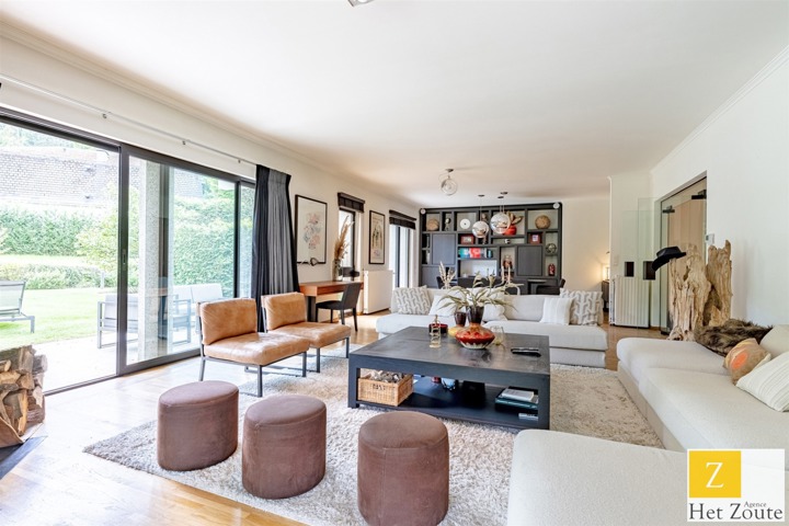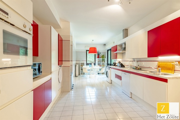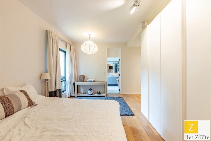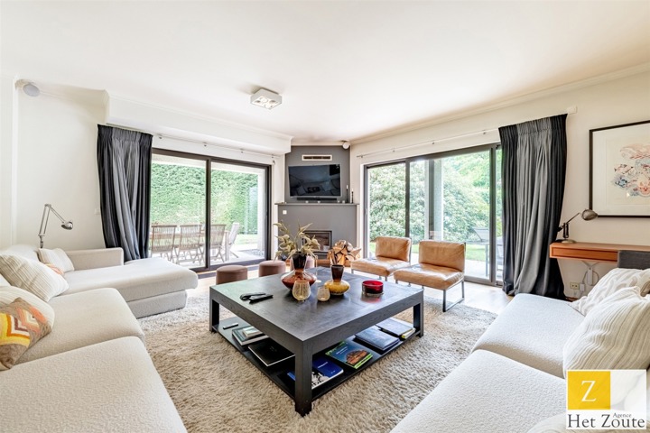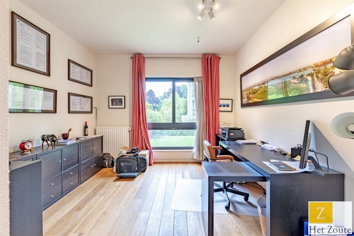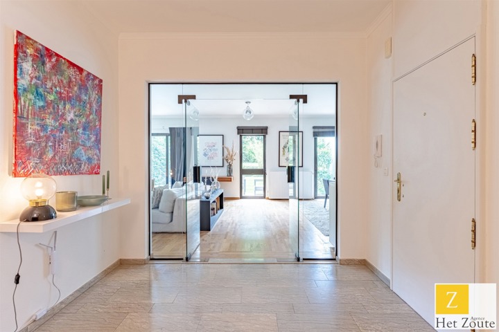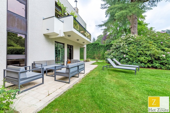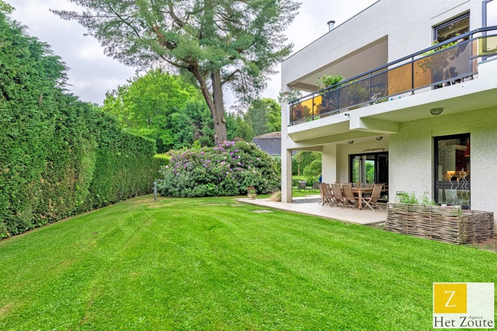 Met een oppervlakte van 231 m² (PEB), baadt het appartement in het licht dankzij de vele erkers en is als volgt samengesteld: Aan de ingang, een grote hal met vestiaire en gastentoilet - aan de rechterkant, meer dan 60m² grote ontvangstruimte, salon/eetkamer met houtkachel die uitgeeft op twee terrassen: een voor de lunch, de andere een "ontspanningsruimte". In het midden, een grote aangrenzende maar aparte ingerichte keuken met ontbijthoek. Aan de achterkant heeft het appartement 3 slaapkamers (12, 12 en 17 m²) en een grote studeerkamer (11 m²). De nachthal heeft geen moderne doucheruimte, terwijl de grote slaapkamer een grote complete badkamer heeft (wc, bad, douche, dubbele wastafel) in mortex. Er is ook ruimte in de andere twee slaapkamers om gemakkelijk 2 extra douches te installeren. Een verzameling hoogwaardige materialen. De woning kijkt uit op het zuidelijke deel van de bloemrijke tuinen van de residentie, die, hoewel ze niet privé zijn, toch voor privégebruik zijn.