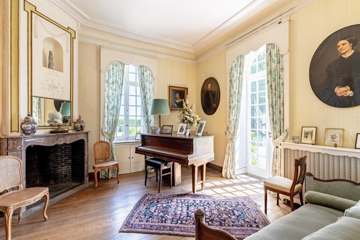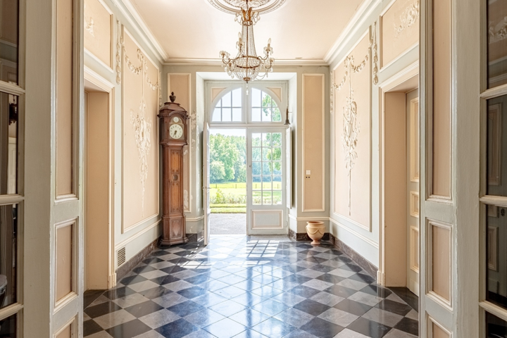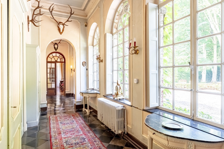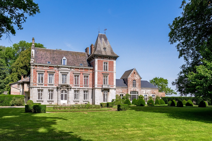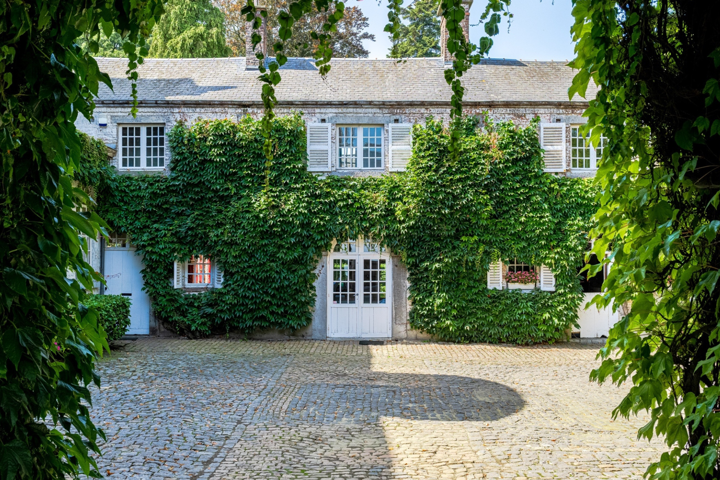 Vanaf het moment dat je binnenkomt, word je gecharmeerd door een oprijlaan met majestueuze bomen die leidt naar een rijk versierde gevel bedekt met weelderig groen. Binnen vind je een warme, authentieke sfeer met hoge plafonds, massief houten vloeren en stenen open haarden.